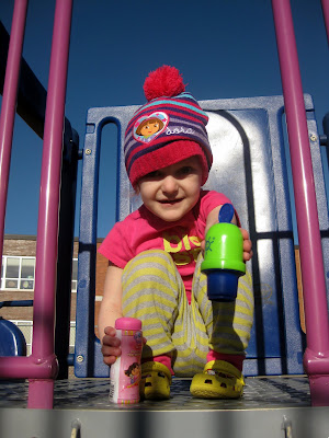 Yesterday evening Amelia and I stepped outside to blow bubbles before dinner and somehow we ended up at the park. I had not intended for us to leave our parking lot so she was in her pajamas from the night before with a winter hat, I was in sweats and a nursing tank and luckily I had Joe in the Baby Bjorn.